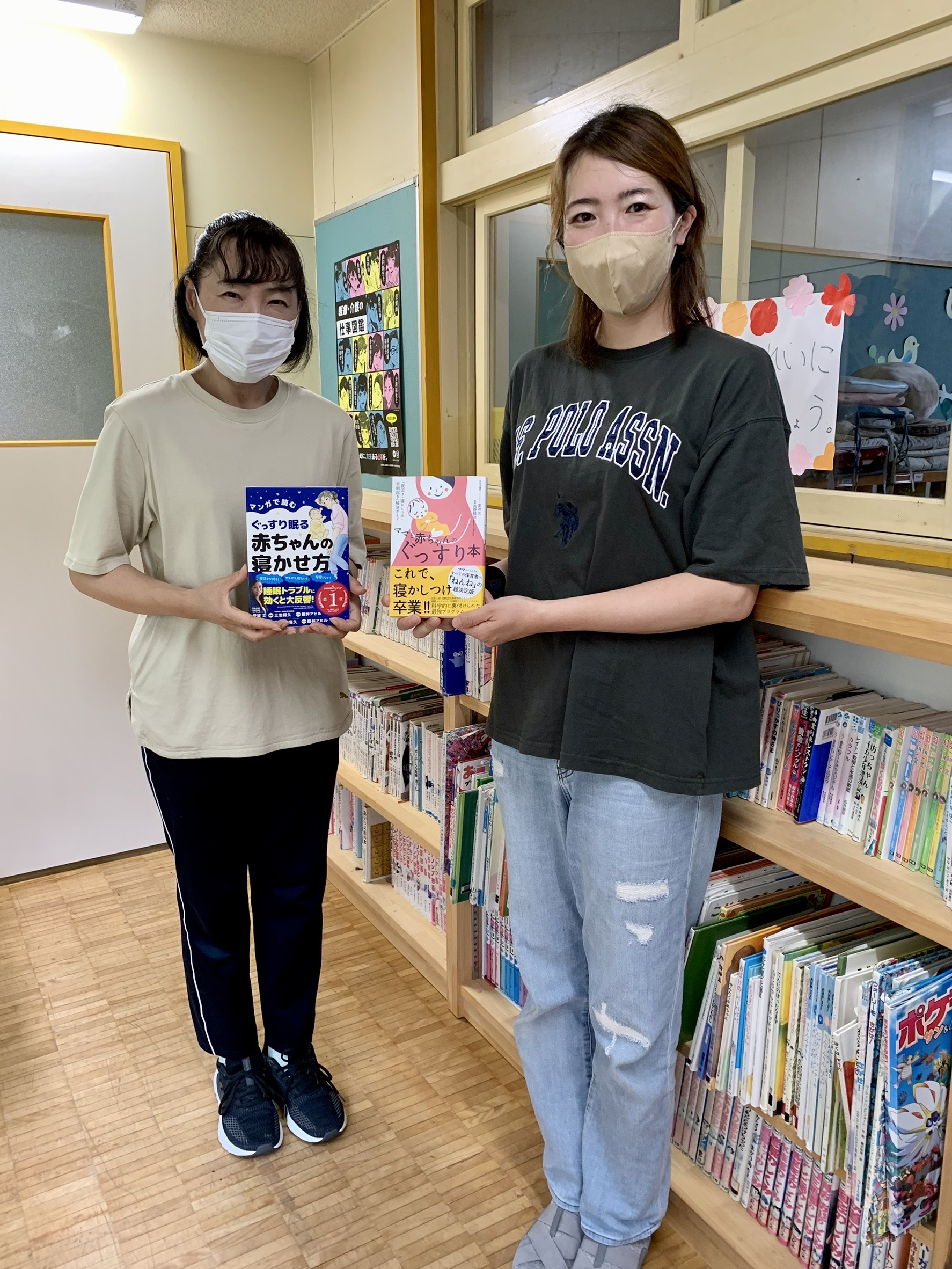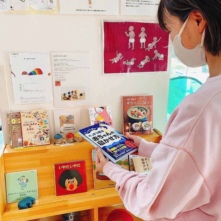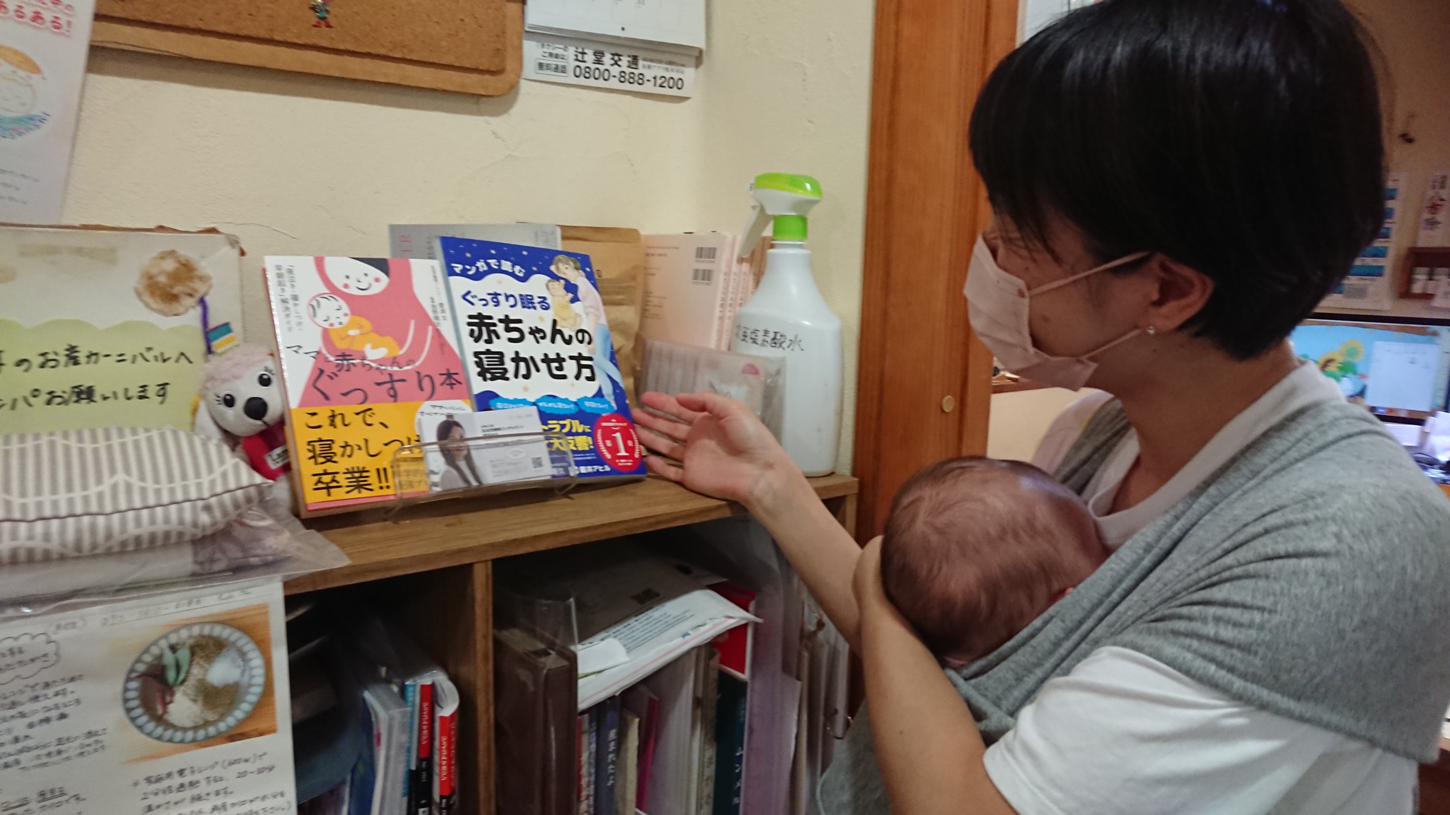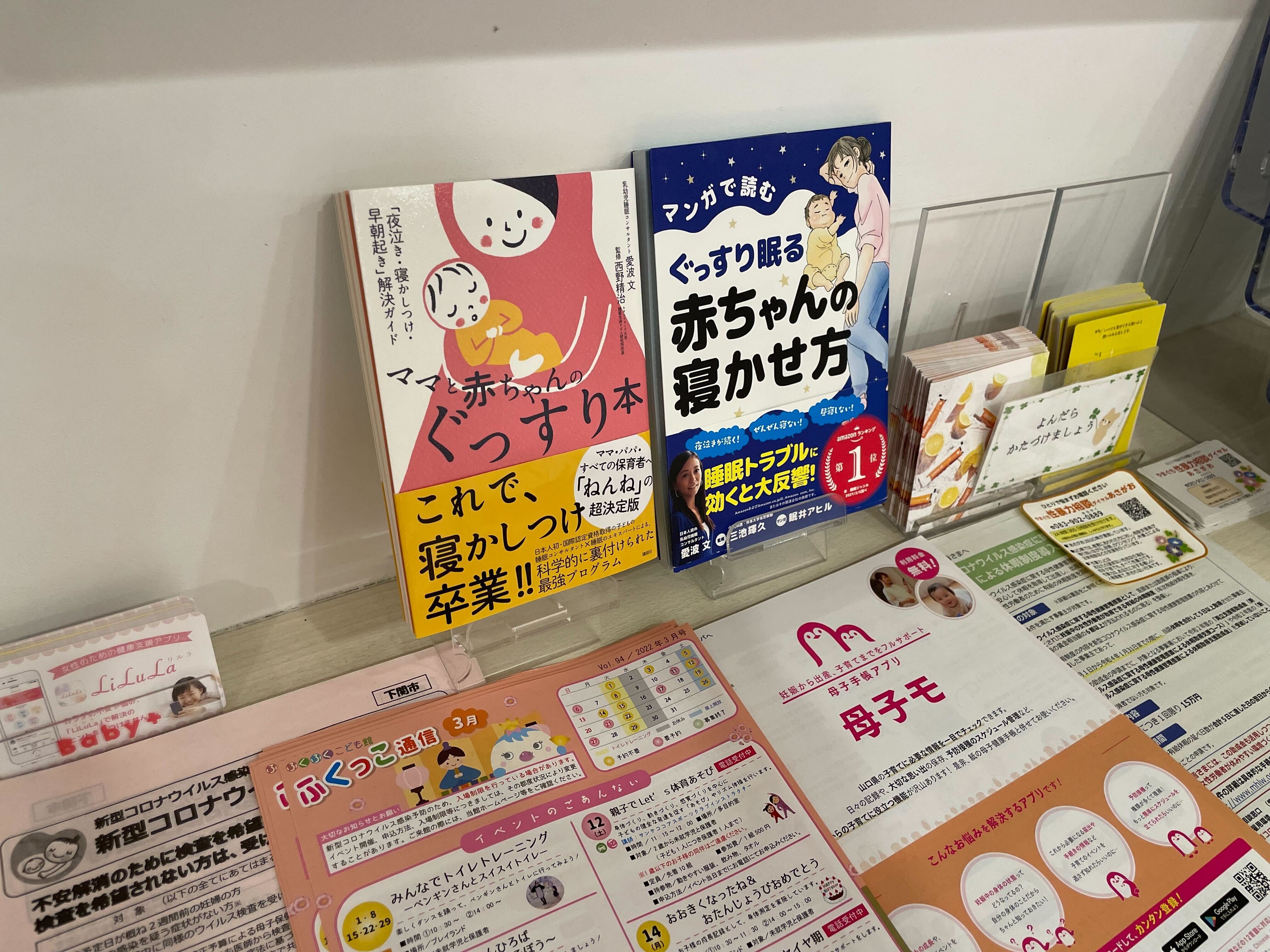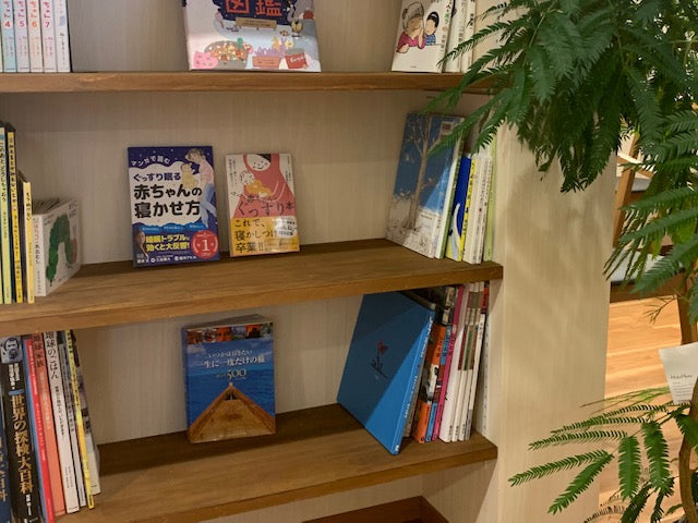 おくるみスリーパーと書籍を置いていただいています